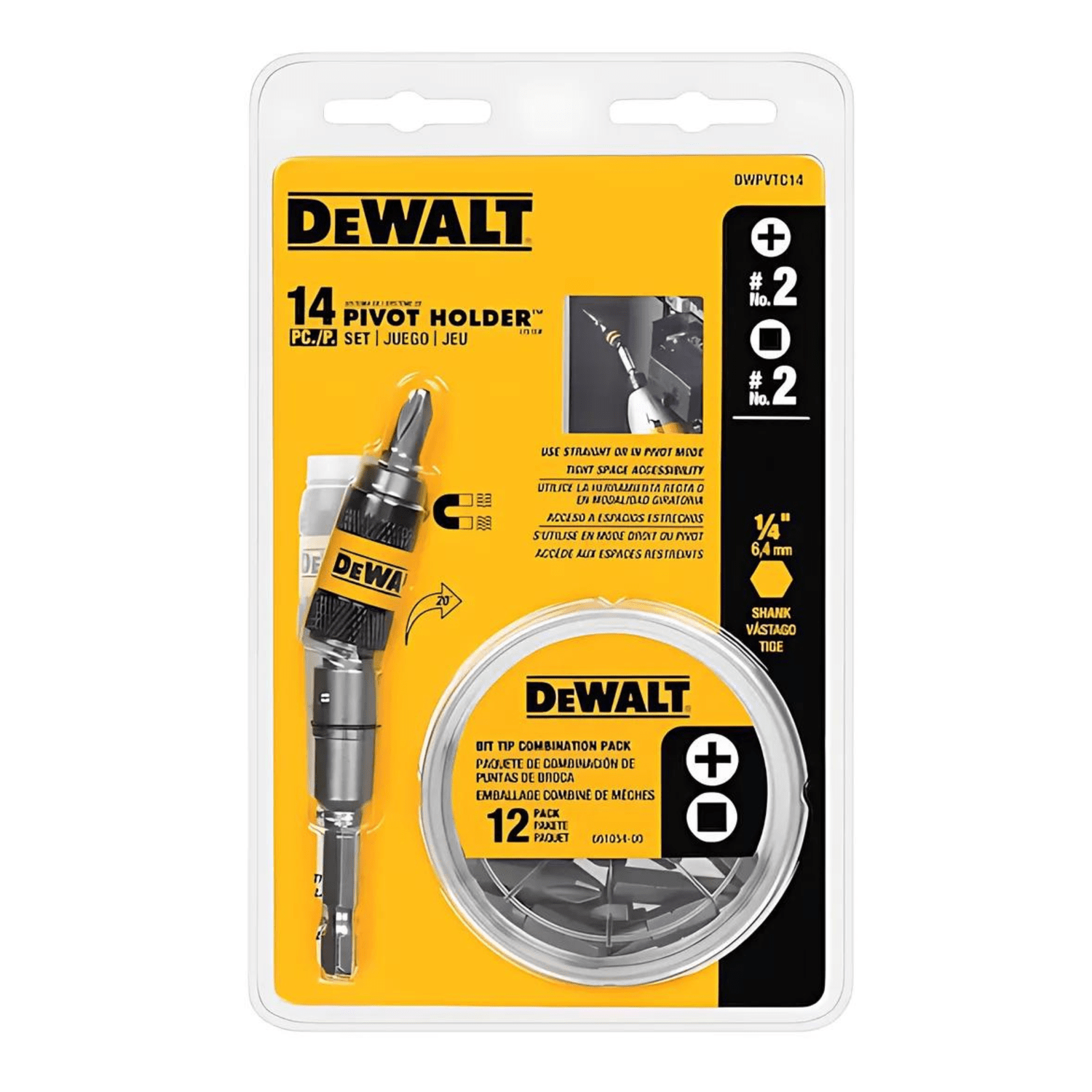 O Adaptador Angular Parafusadeira 14 Pçs DeWalt DWPVTC14 é uma solução ideal para utilização em espaços apertados, com suporte de pivô que oferece maior flexibilidade durante o uso.