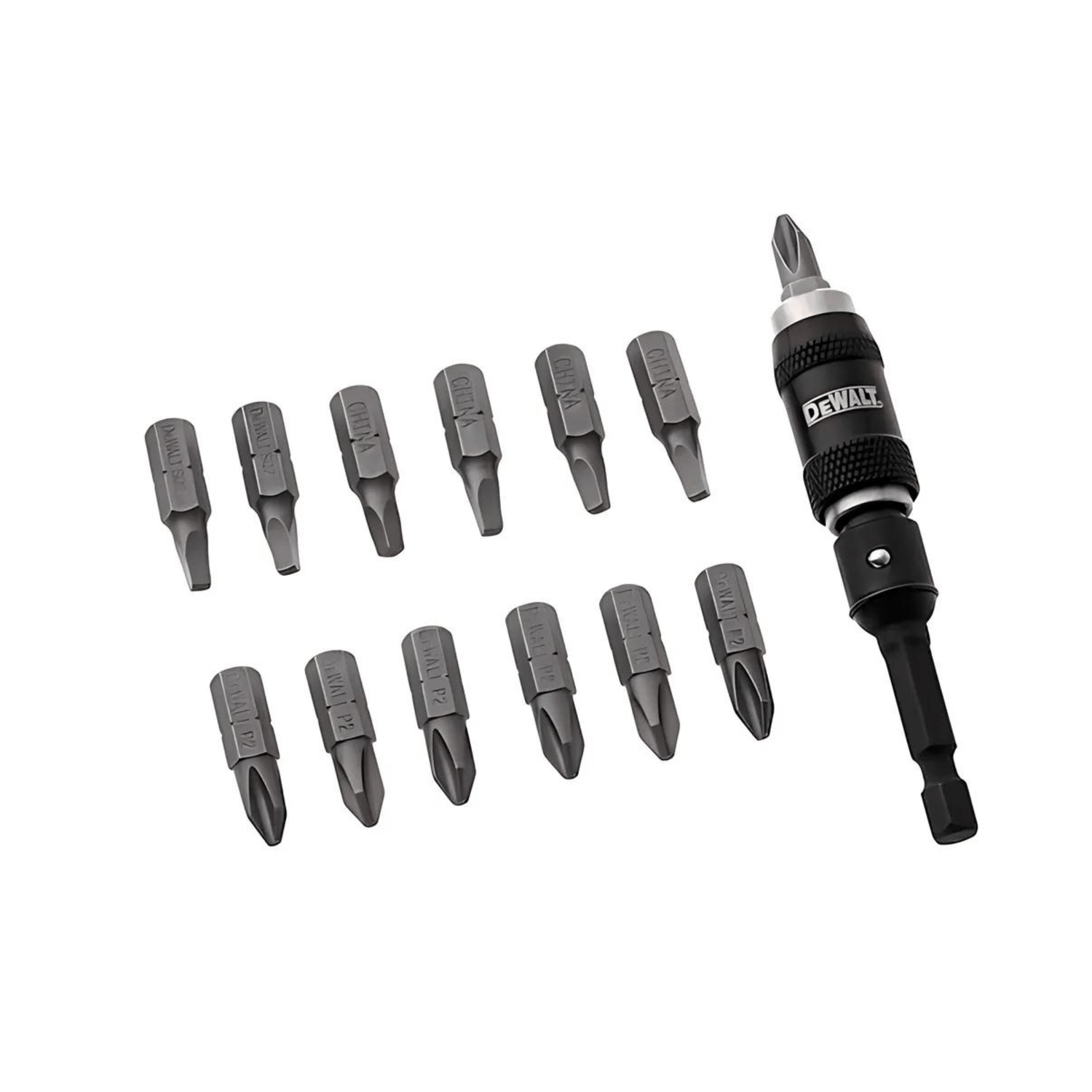 Marca DeWalt Modelo DWPVTC14 Encaixe das Pontas 1/4" Medida das Pontas 2,5 cm (#2) Peso 143g Material Suporte de pivô magnético Inclui 1 Adaptador - 7 - Pontas de fenda cruzada - 6 Pontas quadradas