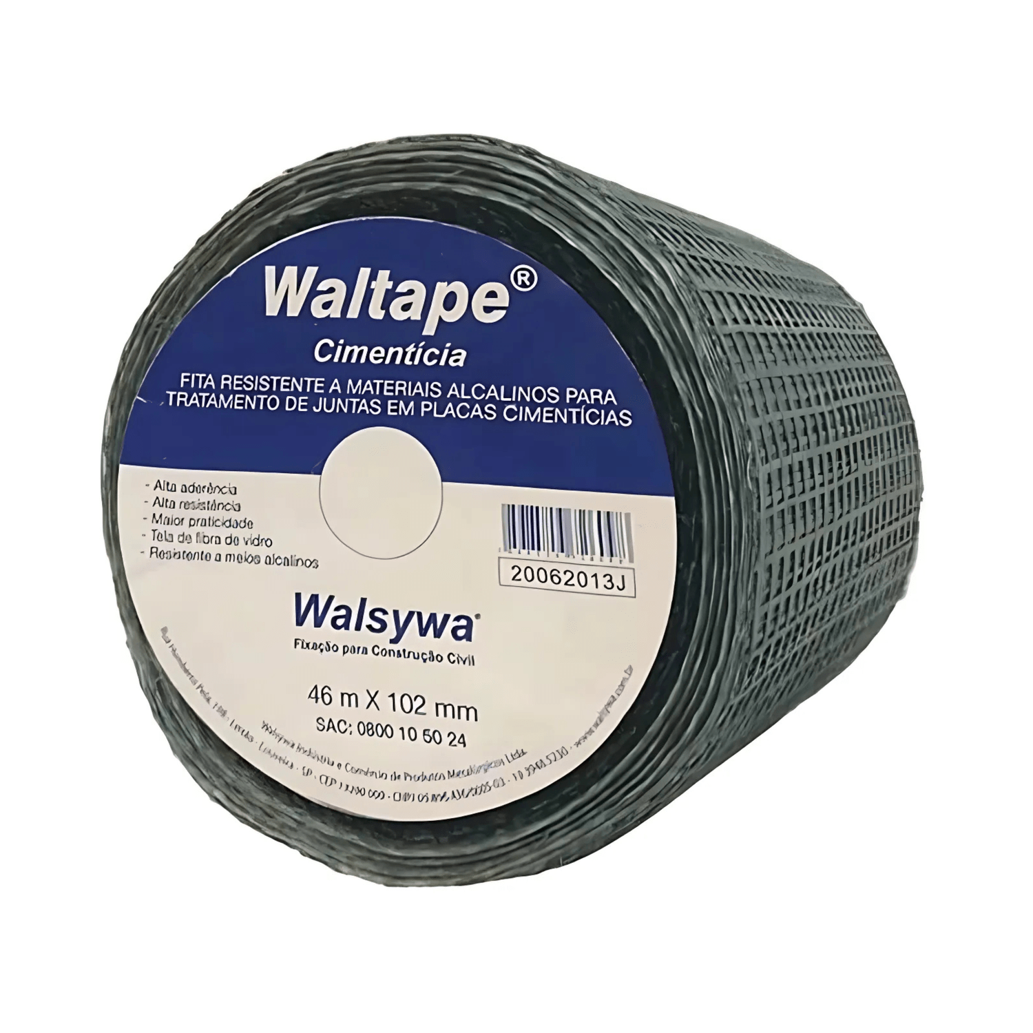 A Fita Telada Cimenticia Waltape 46mX102mm Walsywa é a solução ideal para o tratamento de juntas entre placas cimentícias em paredes, garantindo a estabilidade do acabamento e prevenindo trincas ou fissuras.