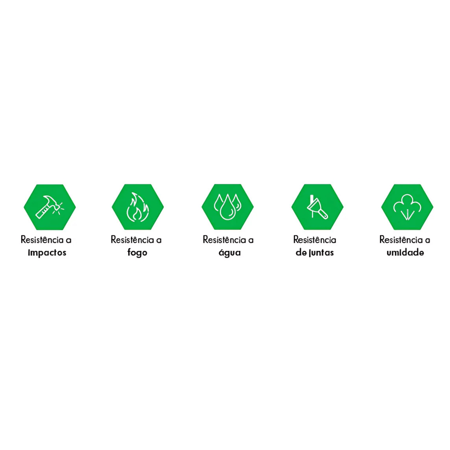 - Material: Fibrocimento, composto de cimento, fibra de celulose, sílica e agregados naturais.