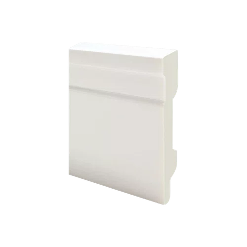 O rodapé frisado da linha Build Up oferece um visual elegante com branco acetinado que não amarela com o tempo, graças ao aditivo anti-UV.