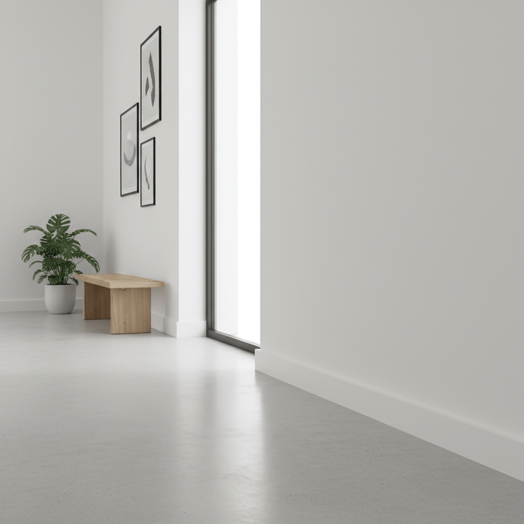 O rodapé liso da linha Build Up oferece um visual elegante com branco acetinado que não amarela com o tempo, graças ao aditivo anti-UV.
